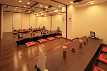 京都のビジネス街の中心「四条烏丸」にほど近く、ビルの1階のやや奥まった入口から入って頂くと、少人数のお座敷と50名までのご宴会が可能な大広間をご用意しております。